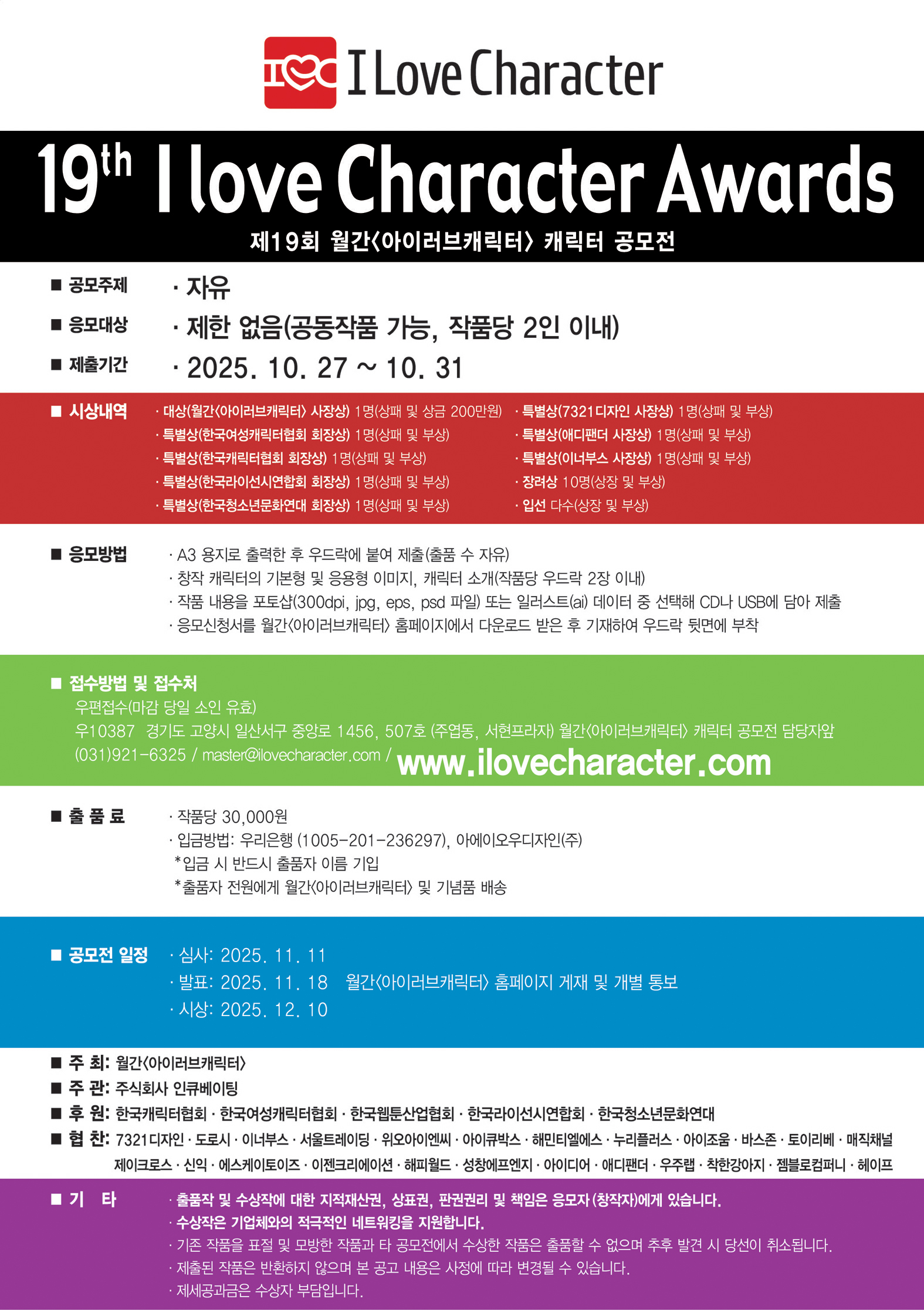 - 발표: 2025년 11월 18일 월간<아이러브캐릭터> 홈페이지 게재 및 개별 통보