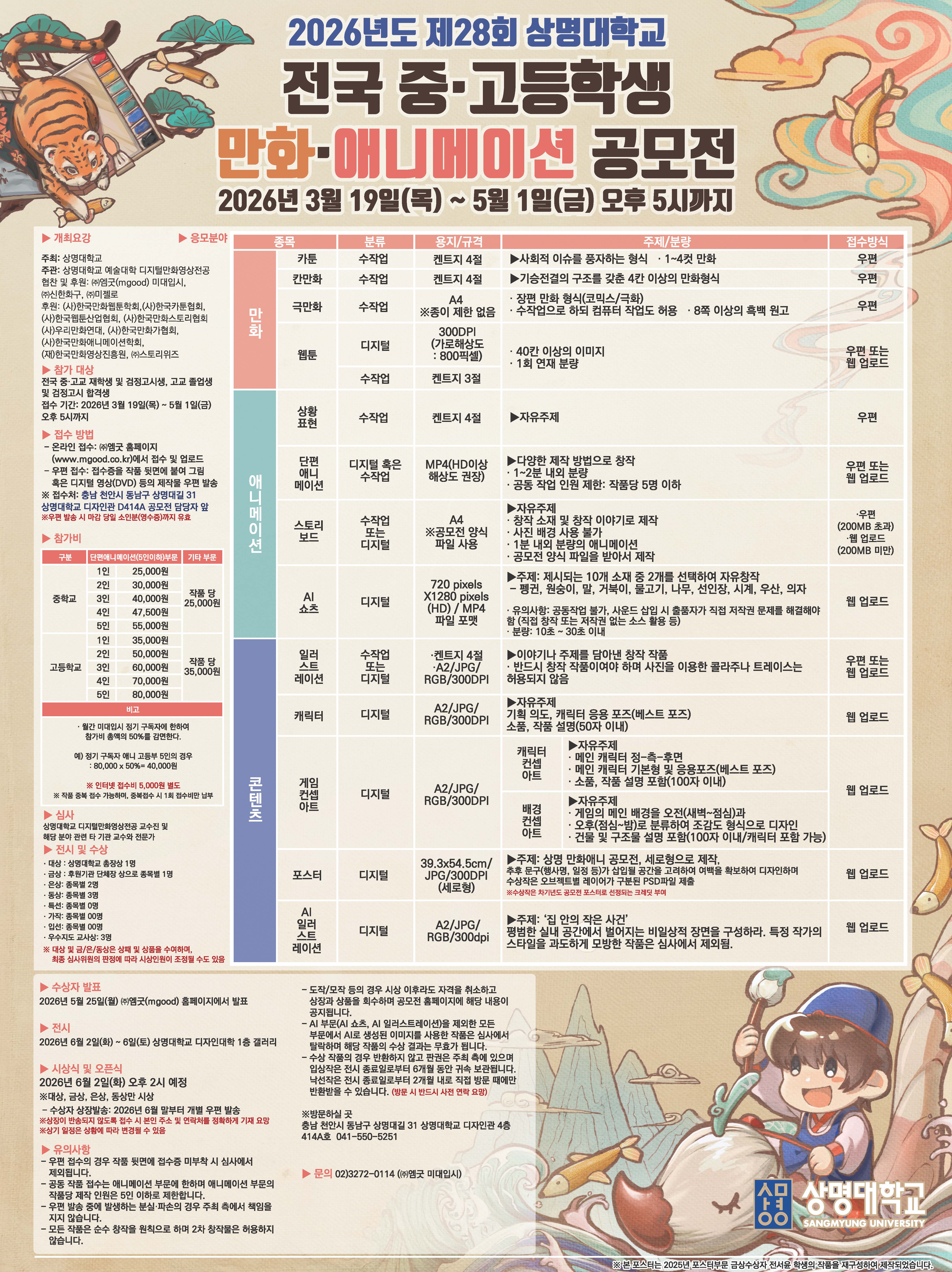 [공모전] 2026년 제28회 상명대학교 전국 중·고등학생 만화·애니메이션 공모전